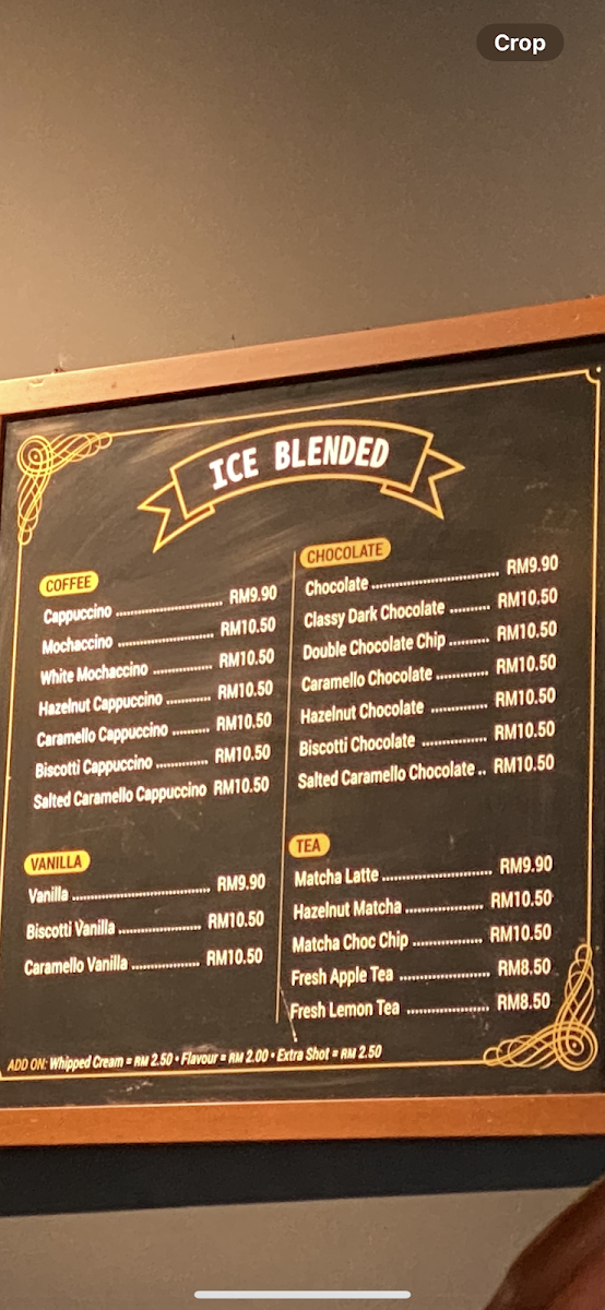 Overall, the menu caters to customers looking for coffee and related beverages as well as those interested in enjoying light meals in a cafe setting.