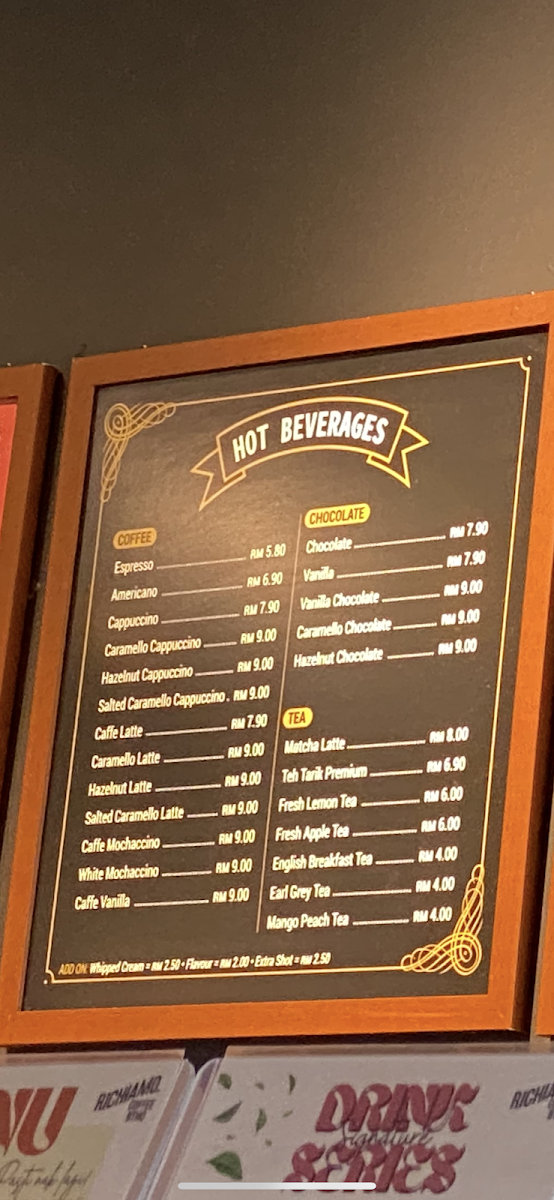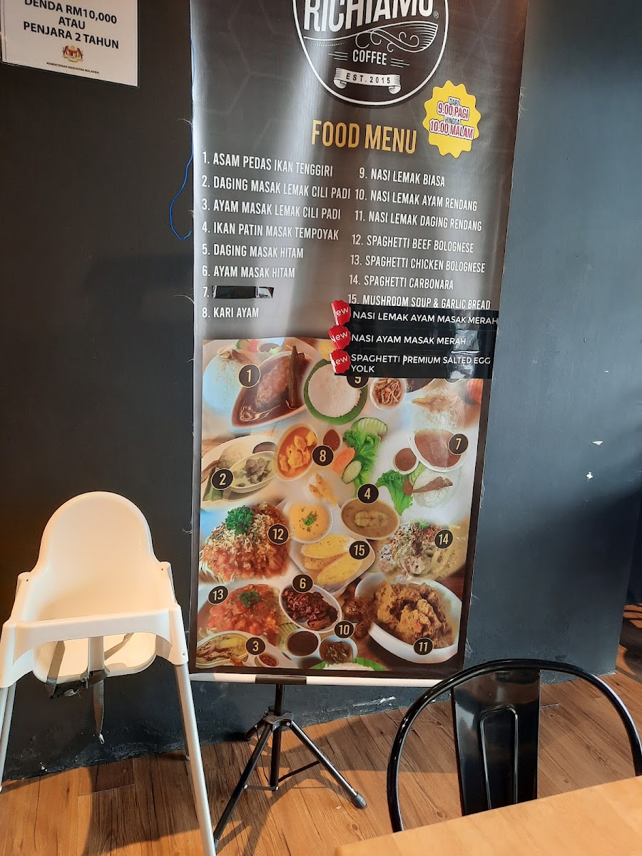 The menu at RICHIAMO COFFEE BTHO offers a selection of beverages and food items suitable for various dining occasions, including breakfast, coffee breaks, and light meals. Visitors can find a range of coffee drinks such as cappuccino, americano, hazelnut coffee, and creative ice blended options like the Ice Blend Hazelnut Cappuccino and Matcha Green Tea Ice Blended. Alongside the beverages, the menu features light food choices including local and fusion dishes like salted egg pasta and nasi kari ayam.